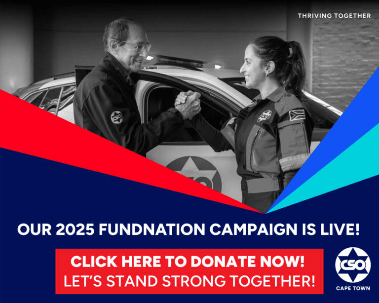 CSO Cape Town is a non-profit that supports the safety and well-being of Cape Town’s Jewish community. We believe in the power of collaboration, as a team and a community, to create a safe and sustainable future for every Jewish Capetonian. Our full-time staff and volunteers approach work with love, purpose, and precision; and will go to any lengths to enhance the lives of those we serve.
